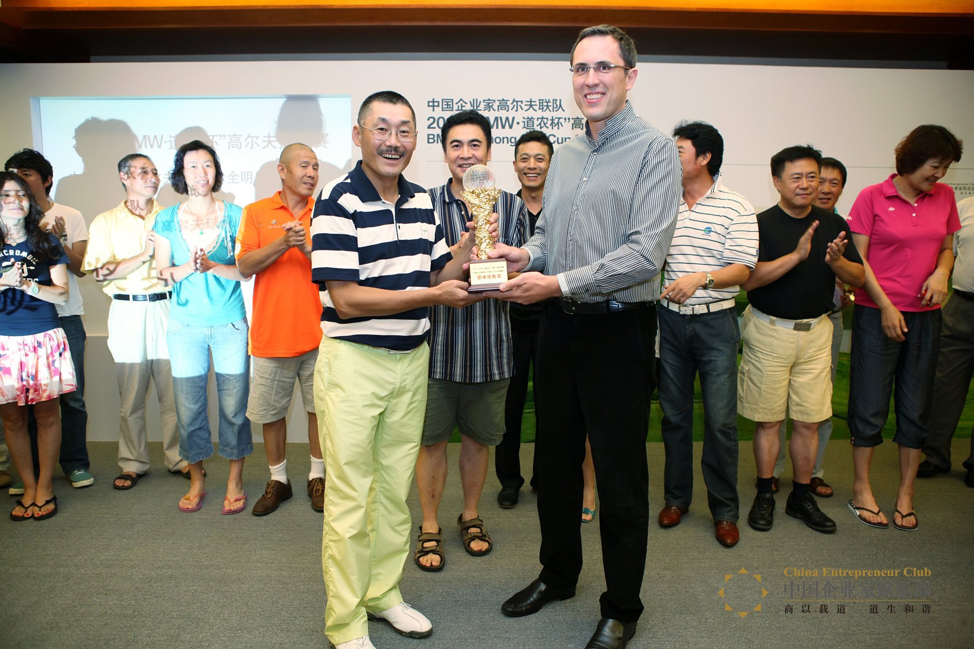 雙方進行了一個下午的奮戰,于傍晚時分圓滿結束。頒獎儀式在翡翠湖俱樂部會所舉行,中企聯隊劉燕生奪得一桿最遠獎,中企聯隊梁福東獲距洞最近獎,艾豐獲BB獎,凈桿A組冠軍獎和凈桿B組冠軍獎,分別由明星聯隊的劉紅燕和中企聯隊的張岷獲得,中企聯隊的呂朝暉獲總桿冠軍獎,團體優勝獎由明星聯隊摘得。簽有所有參賽選手名字的球衣作為貢獻獎授予了傾情贊助全年賽事的華晨寶馬營銷高級副總裁戴雷博士。