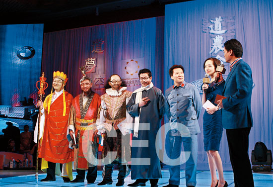 主持人崔永元說,道農會的一大魅力是可以見到不同時代的偉人。去年道農會上,許文強、諸葛亮、孫中山、朱元璋的紛紛"復活",讓道農會現場幾度升騰至沸點。今年率先亮相的是唐三藏,由身兼中國企業家俱樂部及道農會創始人,又即將在兔年--他的本命年踏上創業之旅的劉東華扮演"師父"意味頗深:他不愿做一名苦行僧,但也不是一位花和尚:"取經路上,該忍的就忍了吧"。