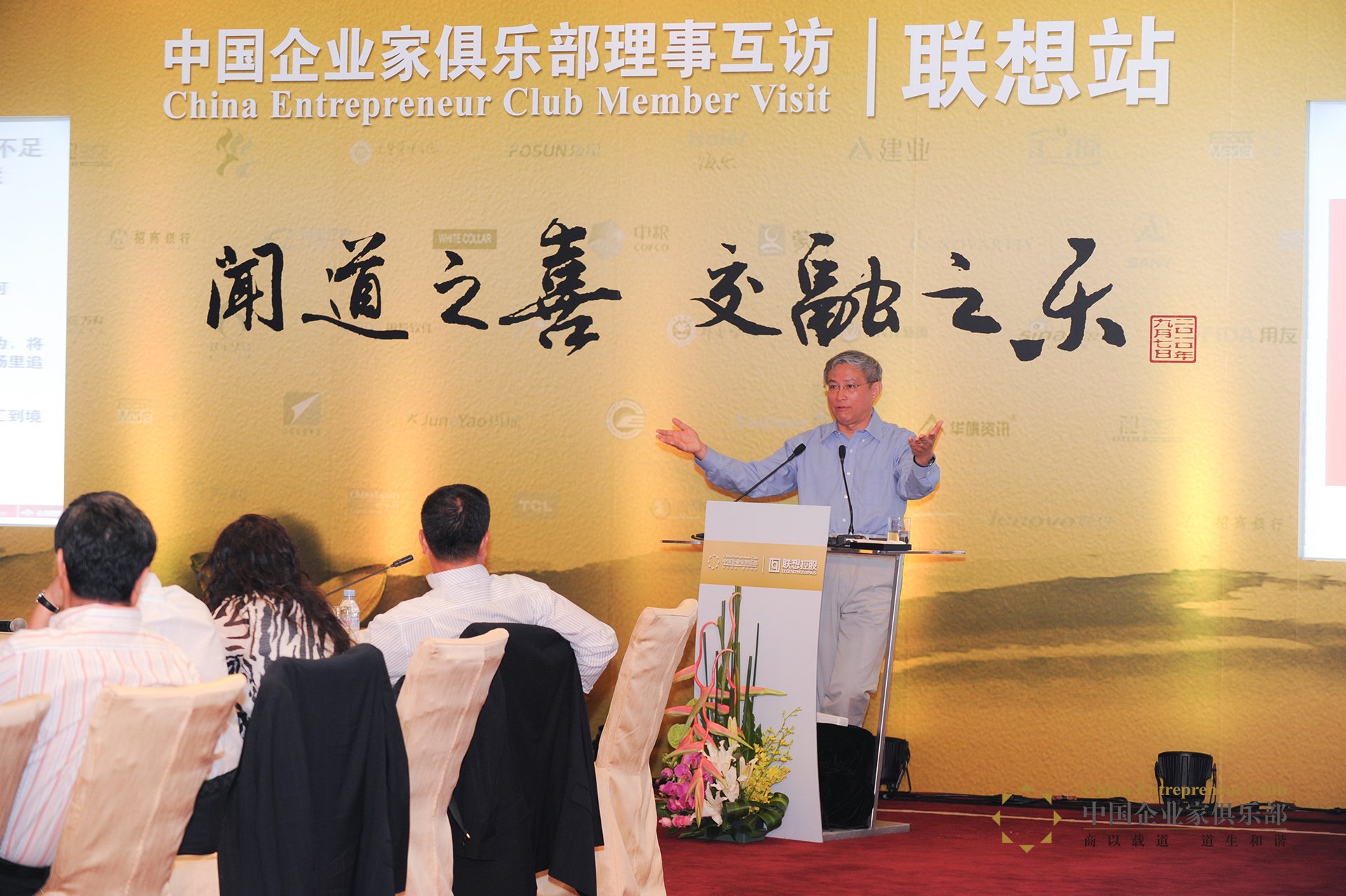 他還講到,企業家不僅要研究微觀層面,還要研究宏觀問題。他講到了他參加這么多次理事互訪的體會與感受,包括2007年萬科理事互訪,2007年訪問阿里巴巴,2008年訪問蒙牛,2009年吉利控股和華誼兄弟的理事互訪,同時他也表達了對次日即將舉行的聯想站理事互訪的期待。