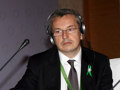 2009年4月22日,由中國企業家俱樂部和道農研究院、《綠公司》雜志主辦的“2009中國綠色公司年會”在北京索菲特大飯店召開。圖為碳信息披露項目(CDP)總裁Paul Dickinson在“環境市場、氣候變化與新商業機會 ”論壇。