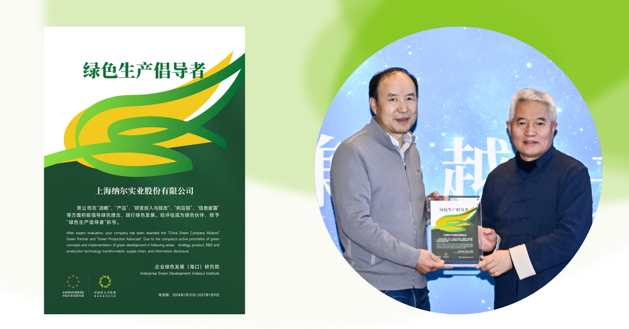 2023年末,綠研院“綠色伙伴”計劃正式啟動,經(jīng)過充分的調(diào)研評估流程,上海納爾實業(yè)股份有限公司成為首個“綠色生產(chǎn)倡導(dǎo)者”。
