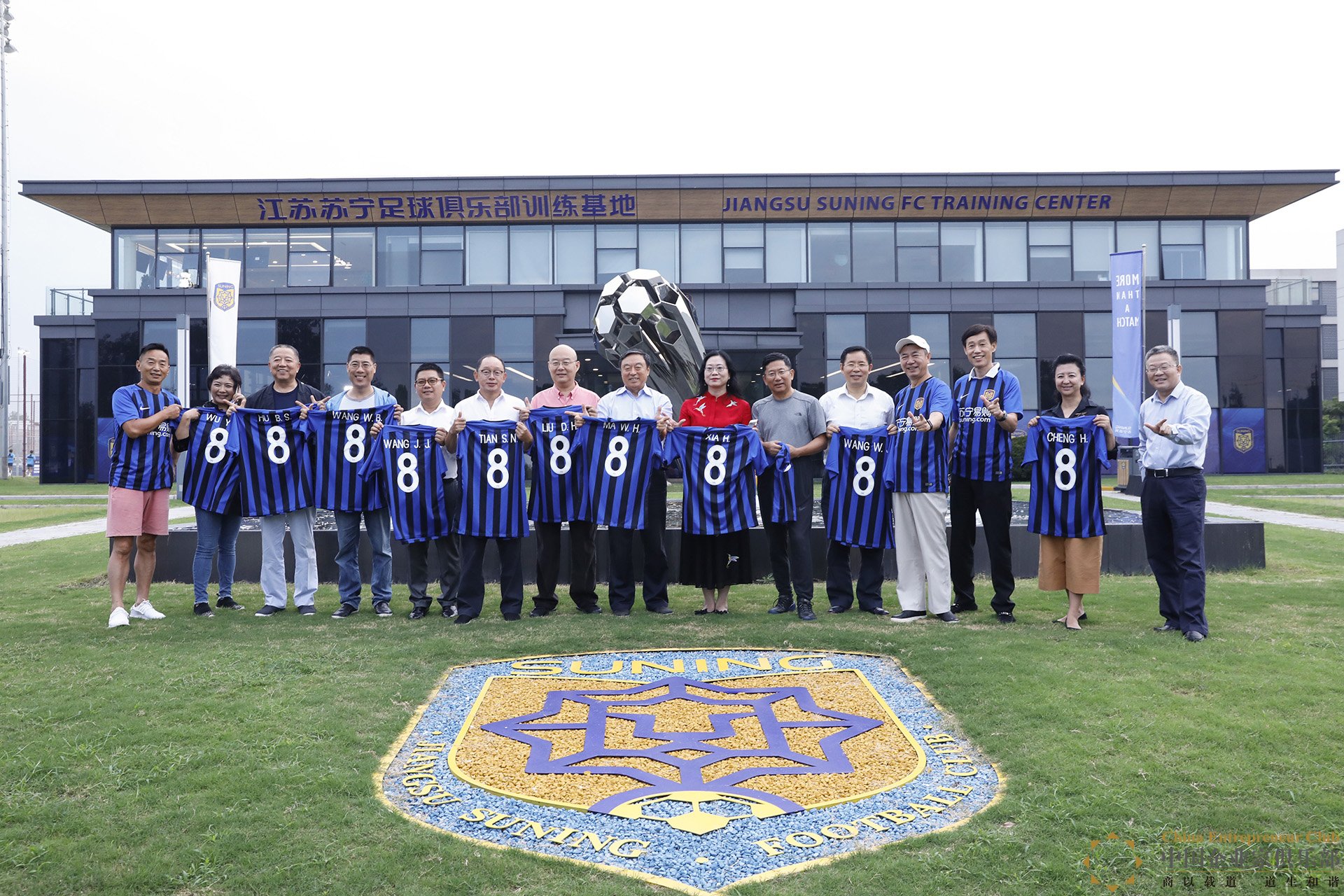 在蘇寧足球訓練基地,CEC理事們不僅觀摩體育智慧云平臺實施捕捉、分析球員集訓的大數據,還親自下場過了一把球癮。(來源:中國企業家俱樂部)