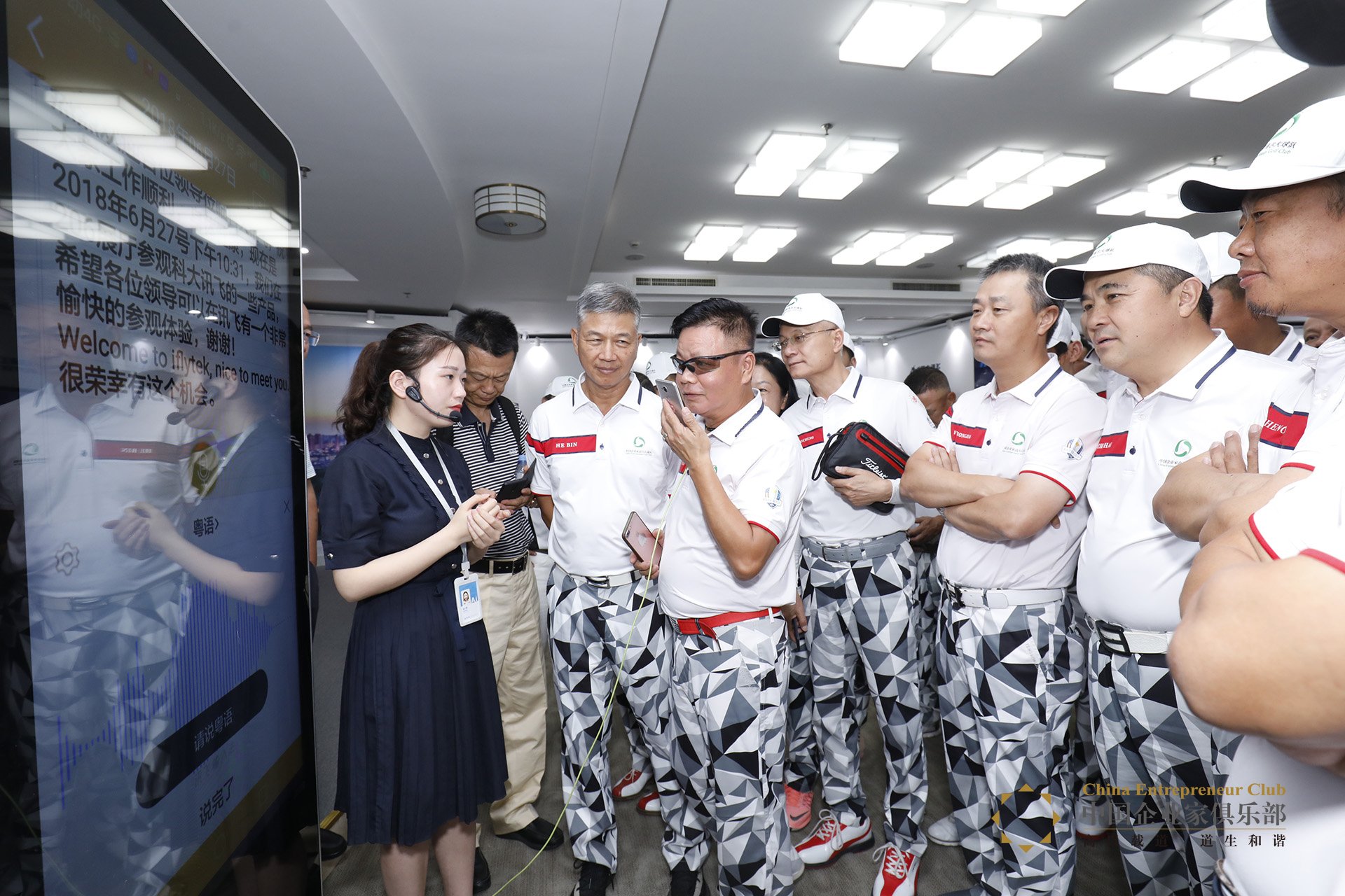 當(dāng)日,中國(guó)企業(yè)家高爾夫球隊(duì)還在合肥參訪了國(guó)內(nèi)人工智能領(lǐng)域的龍頭企業(yè)——科大訊飛。隊(duì)員們?cè)诳拼笥嶏w總部感受了語(yǔ)音識(shí)別、翻譯、合成,AI教育,物聯(lián)網(wǎng)等產(chǎn)品上的“黑科技”。