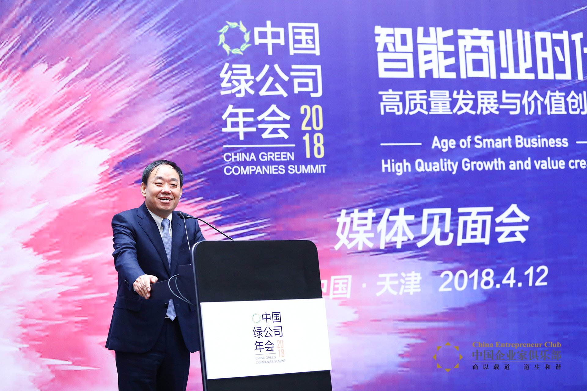“2018中國(guó)綠公司年會(huì)媒體見面會(huì)”4月12日在天津于家堡舉行。中國(guó)企業(yè)家俱樂部副理事長(zhǎng)、新奧集團(tuán)股份有限公司董事局主席王玉鎖出席并演講。