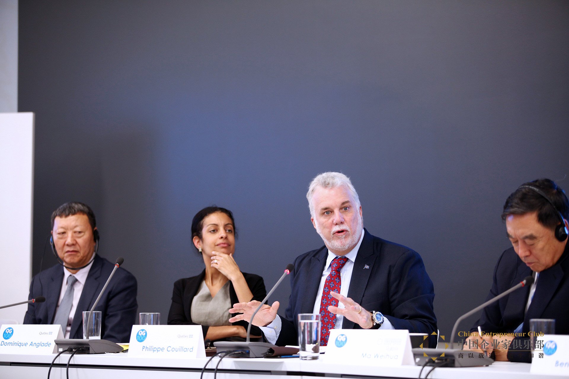 魁北克省省長菲利普·庫亞爾在QG100俱樂部圓桌研討會上致辭