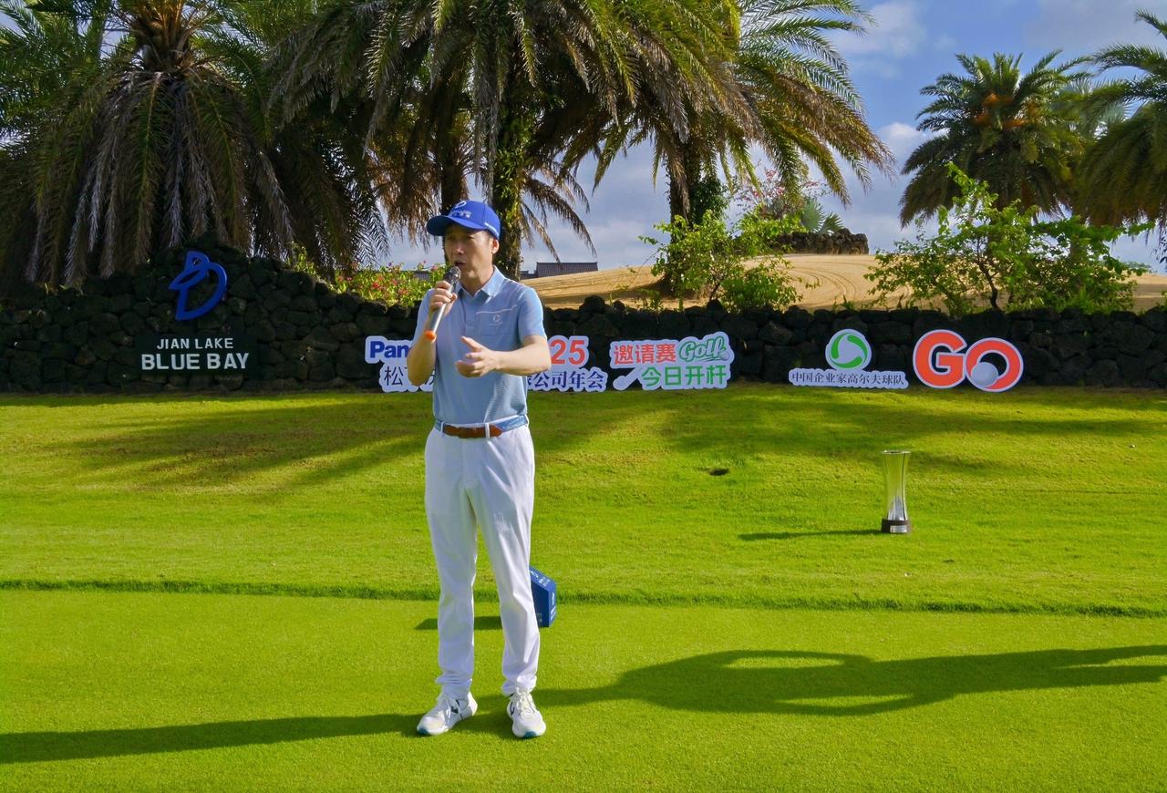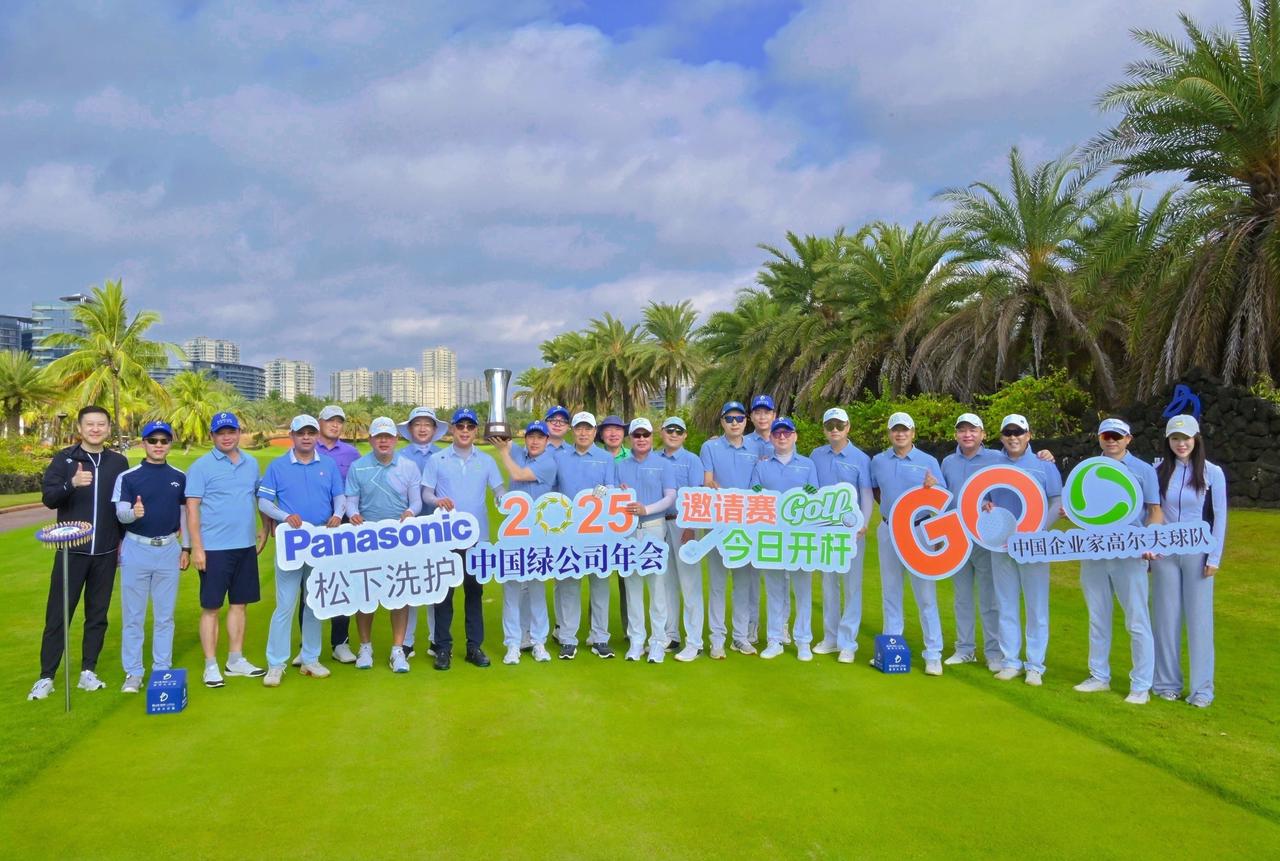 2025年4月22-23日,參與中國綠公司年會的企業家們在結束多場主題研討后,開啟“Panasonic松下洗護杯”高爾夫邀請賽。揮桿陵水鑒湖藍灣高爾夫球會和三亞海棠灣海中海高爾夫俱樂部,這也是中國企業家高爾夫球隊成立以來的第198、199場賽事。