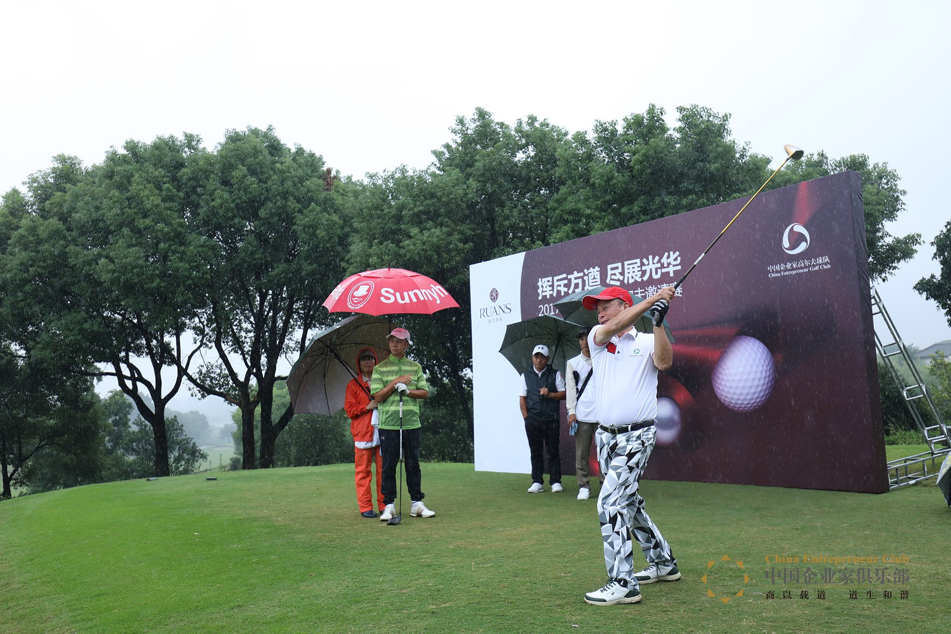 ——話說,我們中企球隊上個月在海拔3000米的高原打球,這次在暴雨中打……看來做企業(yè)家不僅要腦路清奇,還要身板子硬。